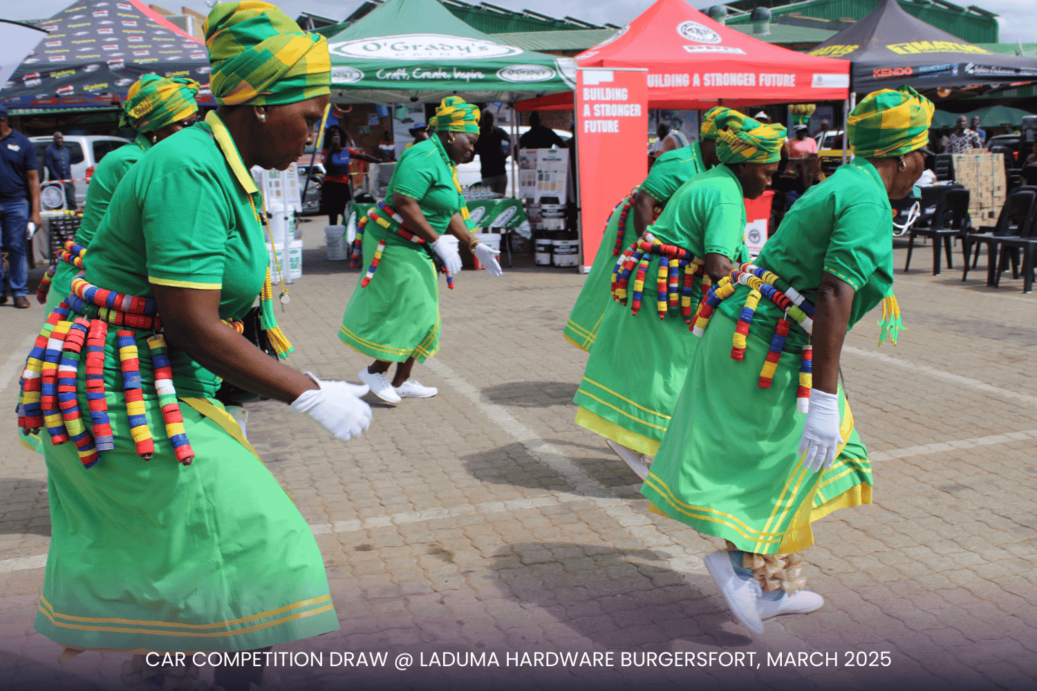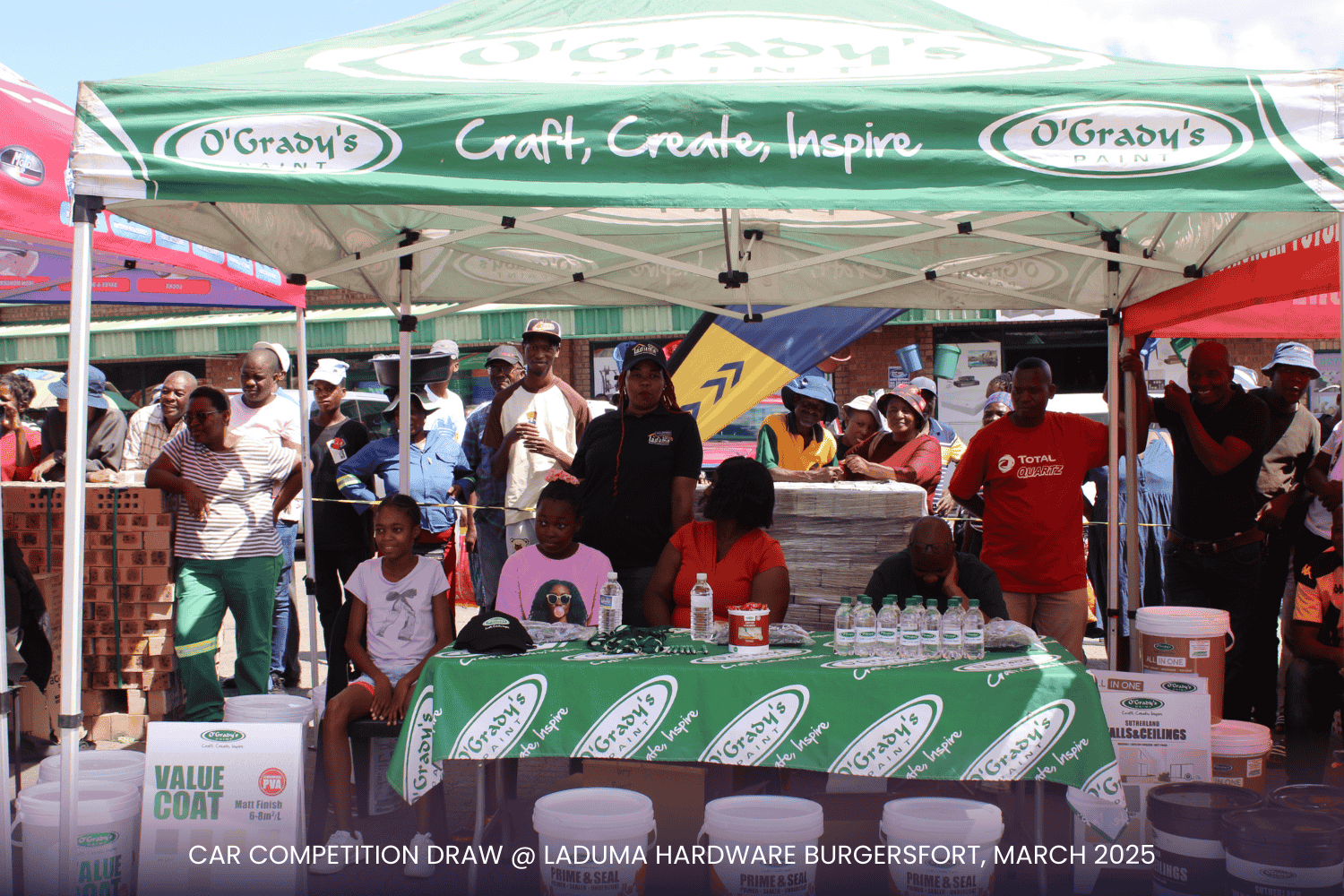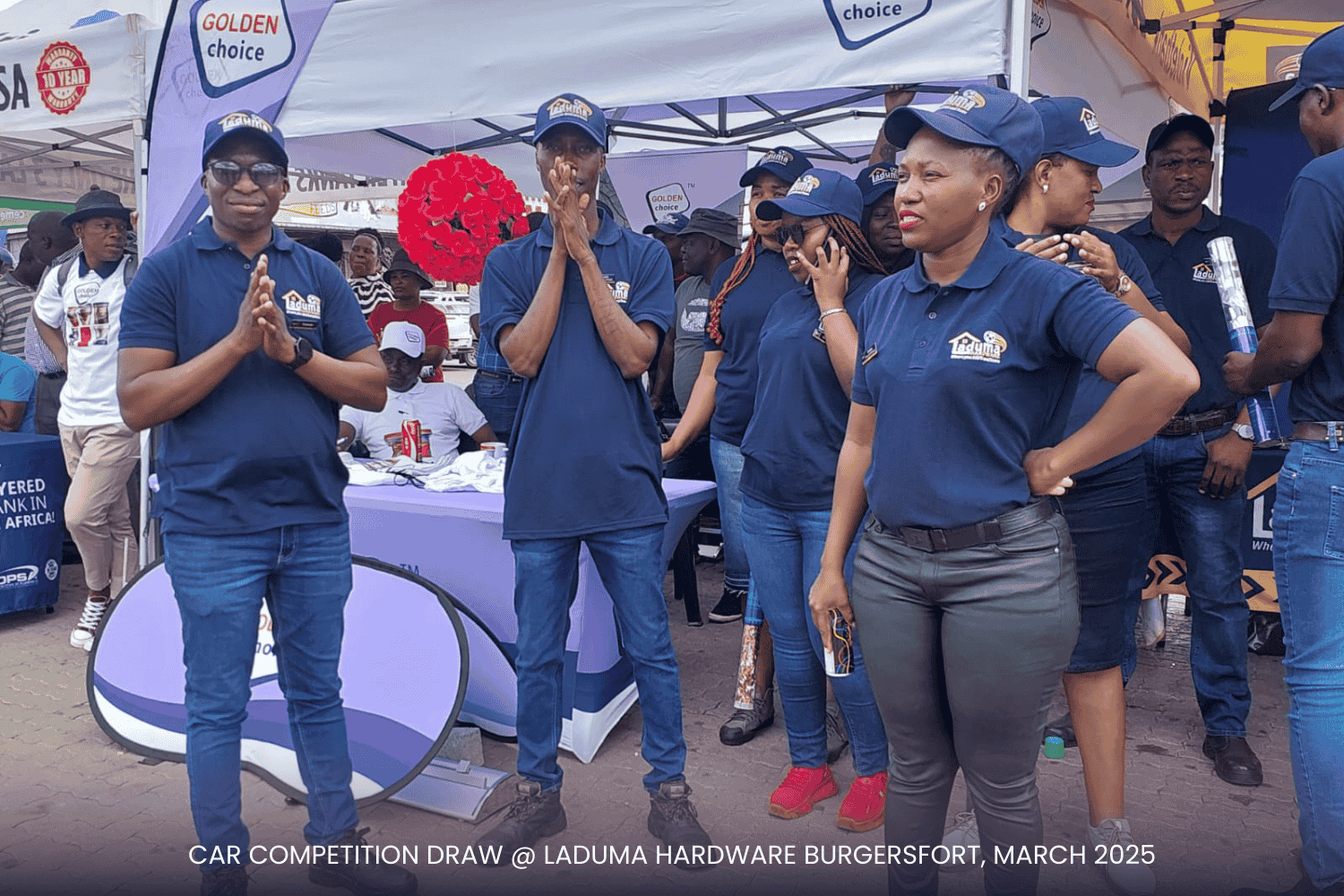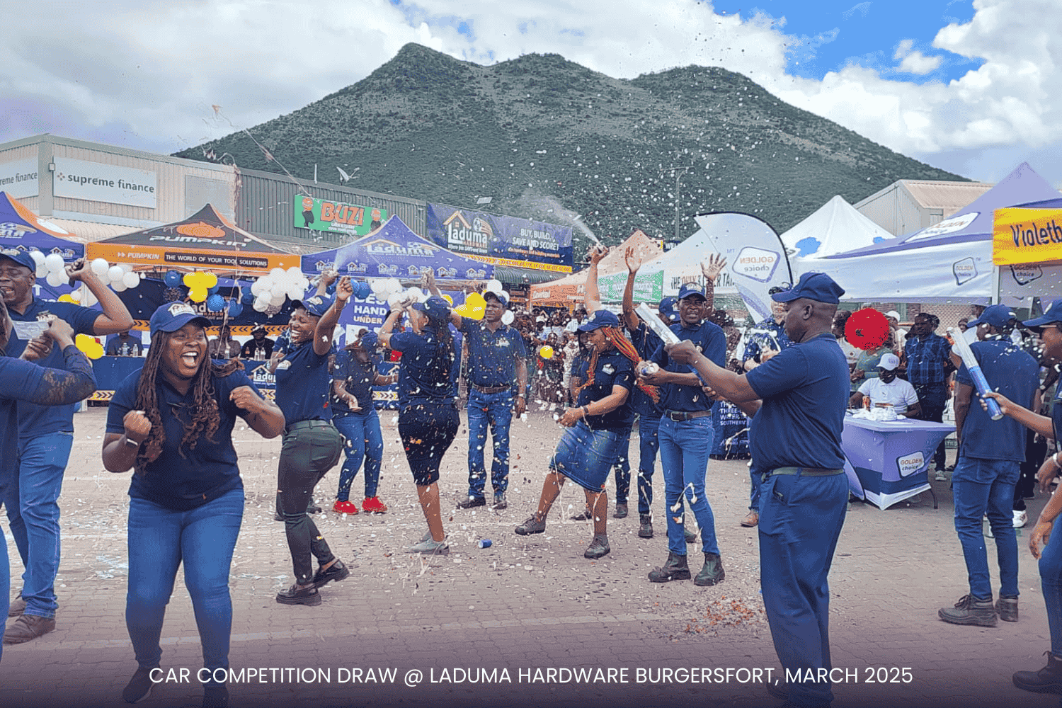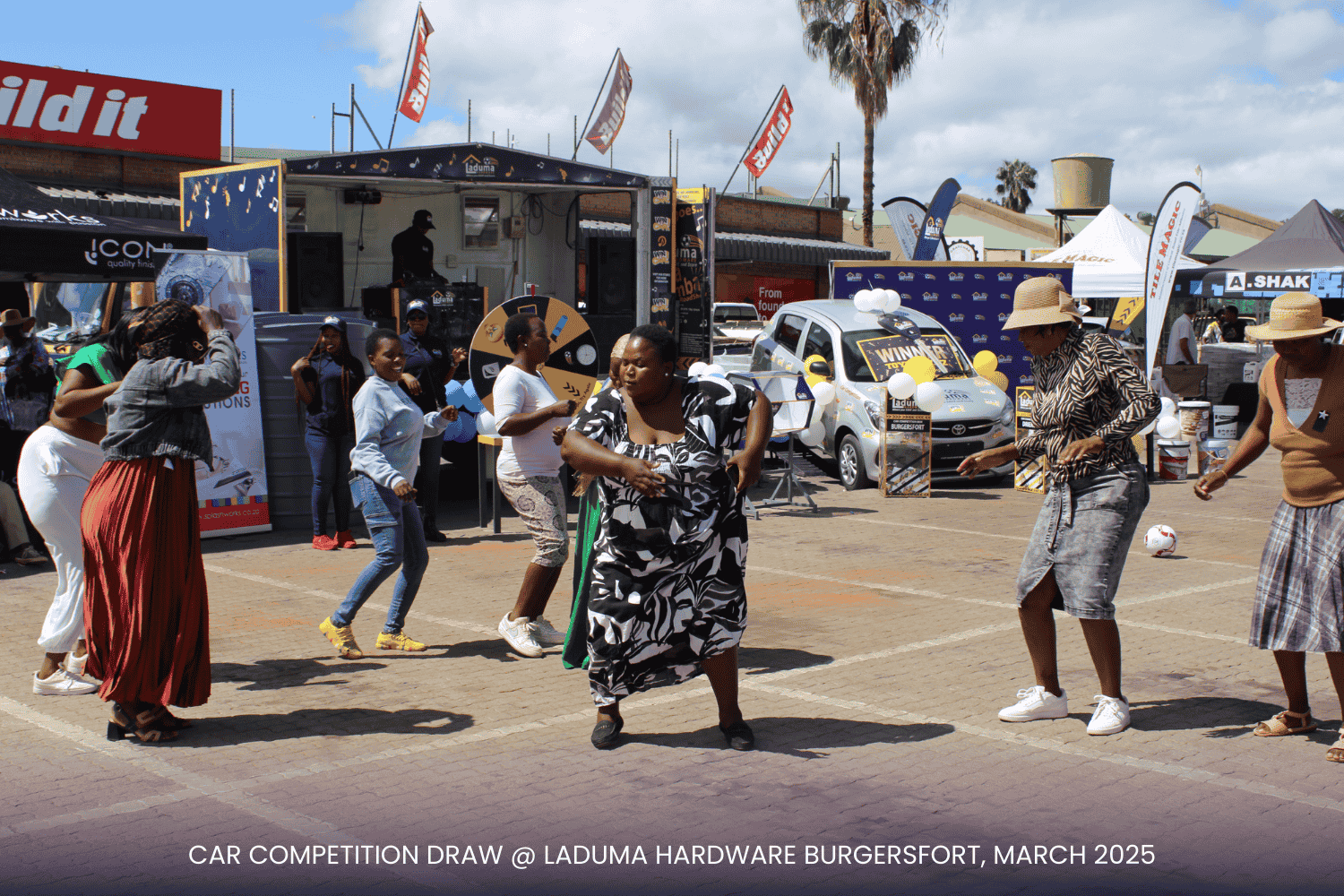 With a prime setup right at the doorstep of our competitor, Build It, the event was a visual spectacle! Our incredible suppliers—Tile Magic, Al Shaik, Lin Tank, Africa Tank, Corobricks, Matus, PPC Cement, and Mamba Cement and others—showed up in style, displaying their products and promotional items to keep the audience engaged. The Laduma Team worked tirelessly to create an exciting, well-organized arena, ensuring top-tier entertainment for our valued customers.