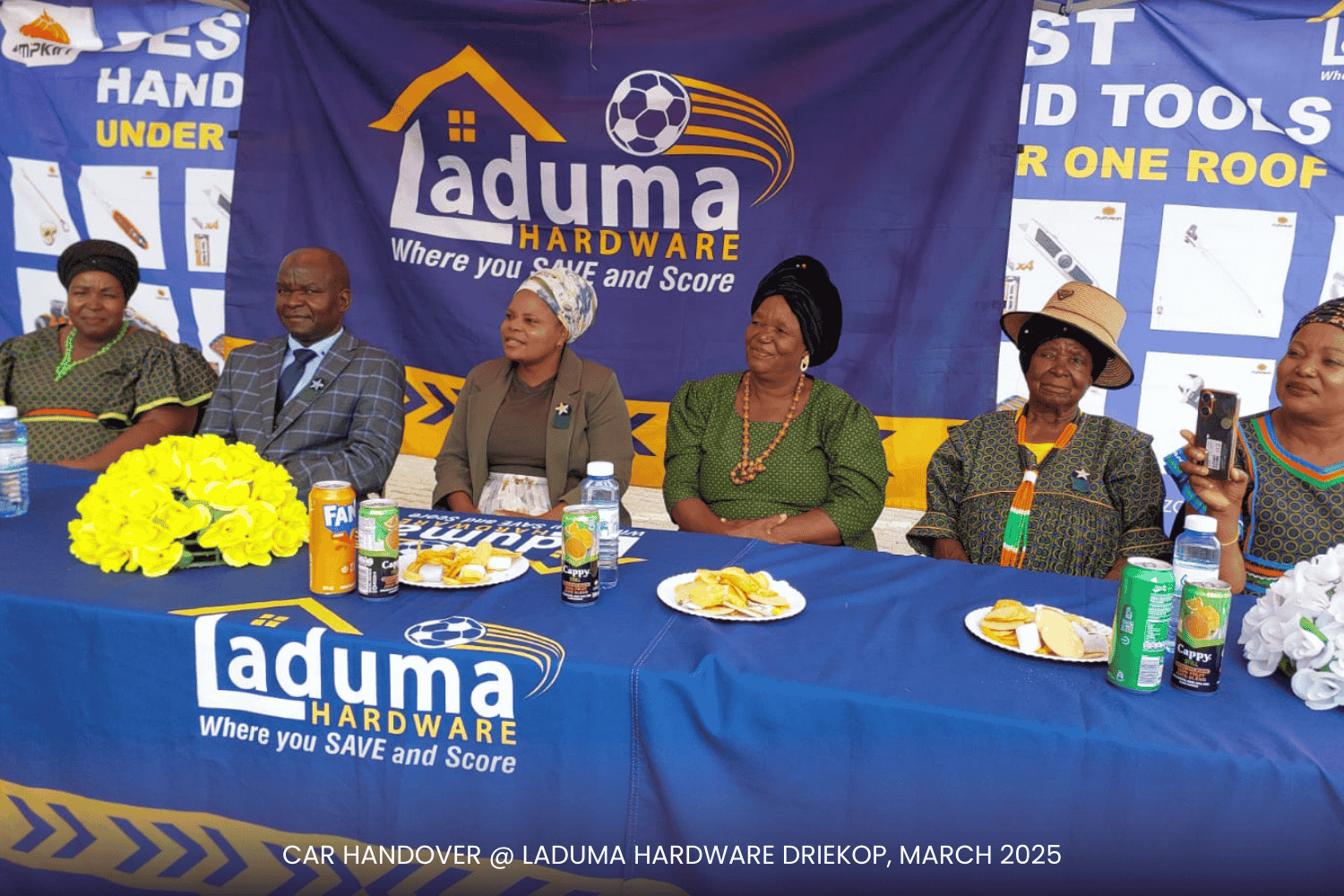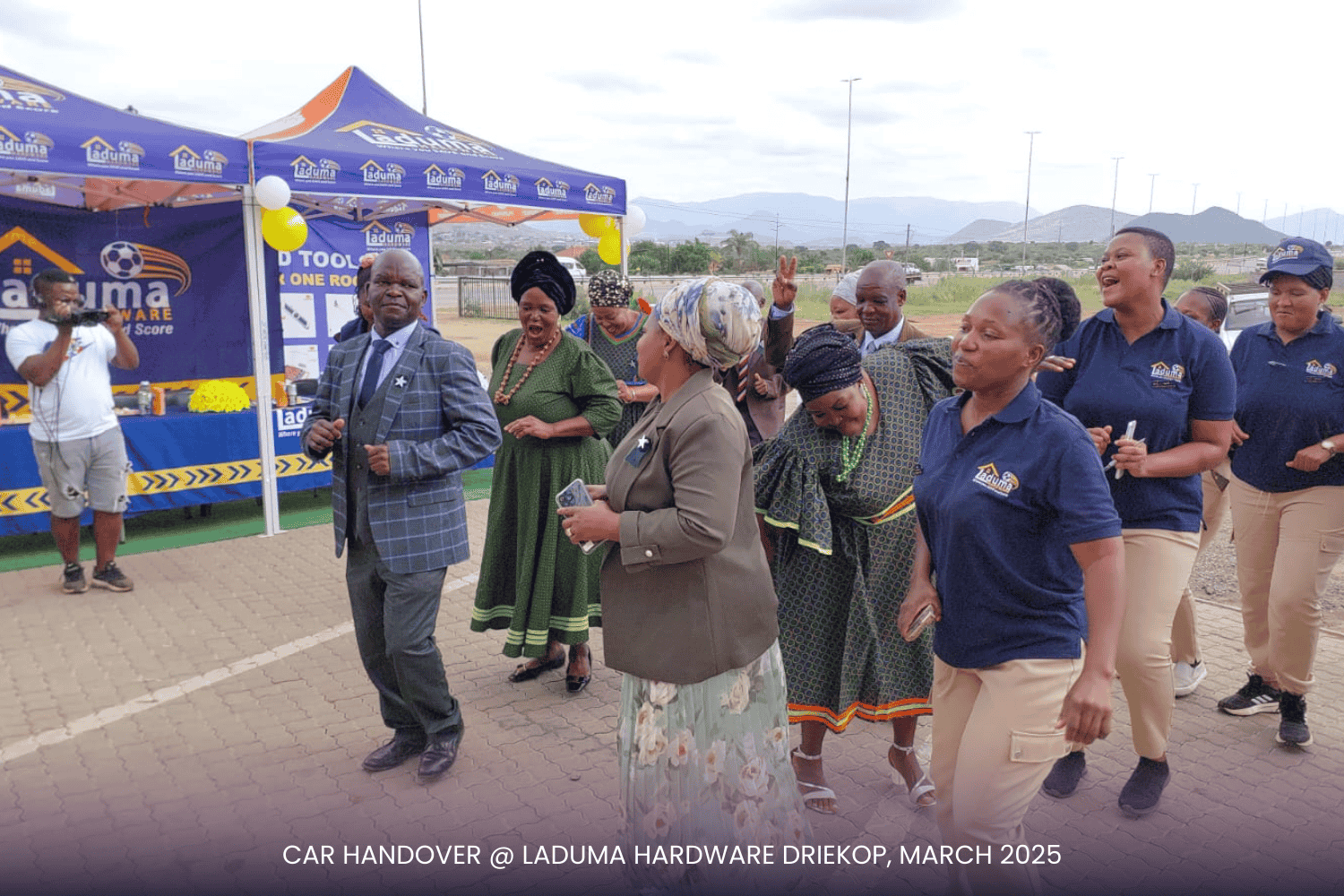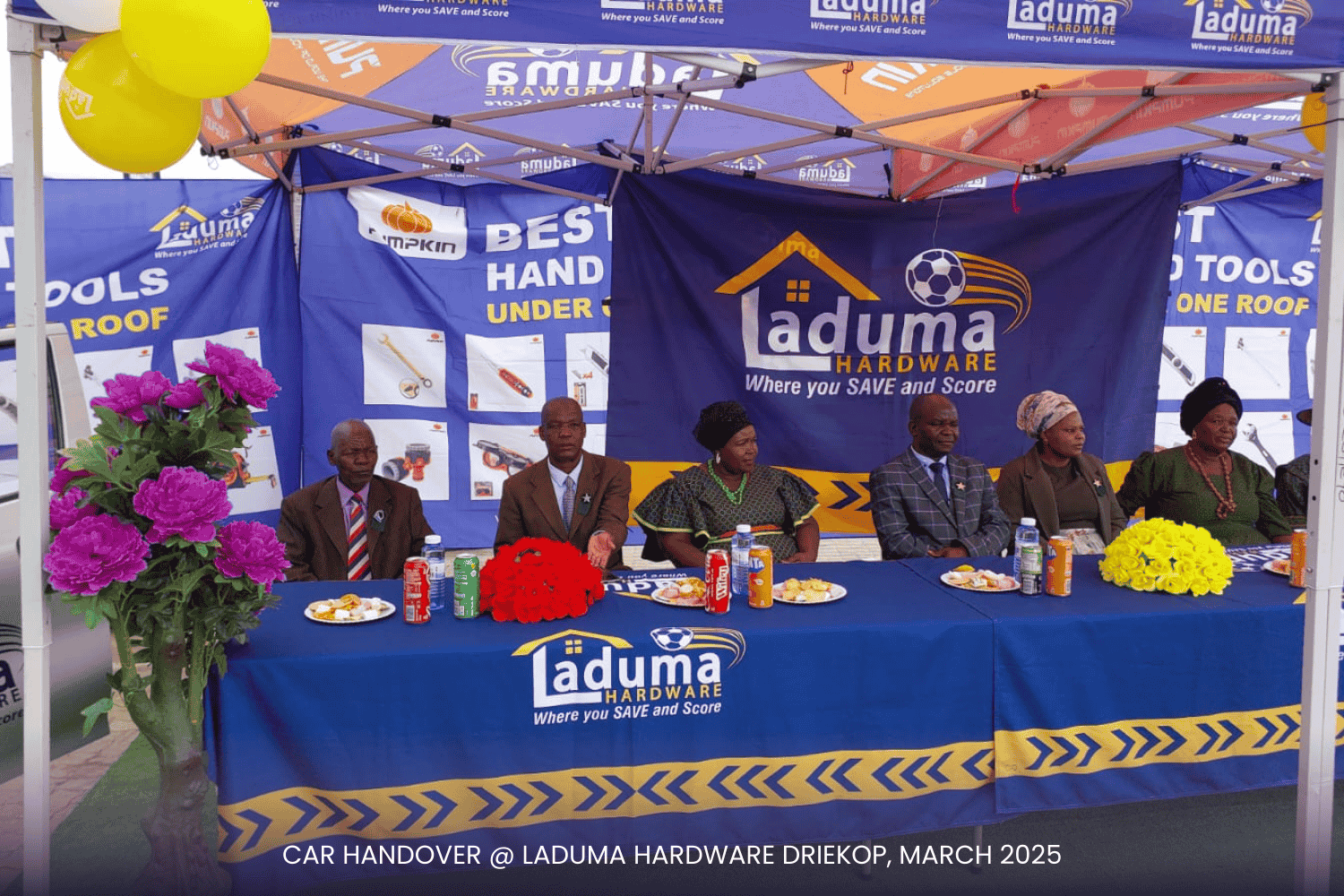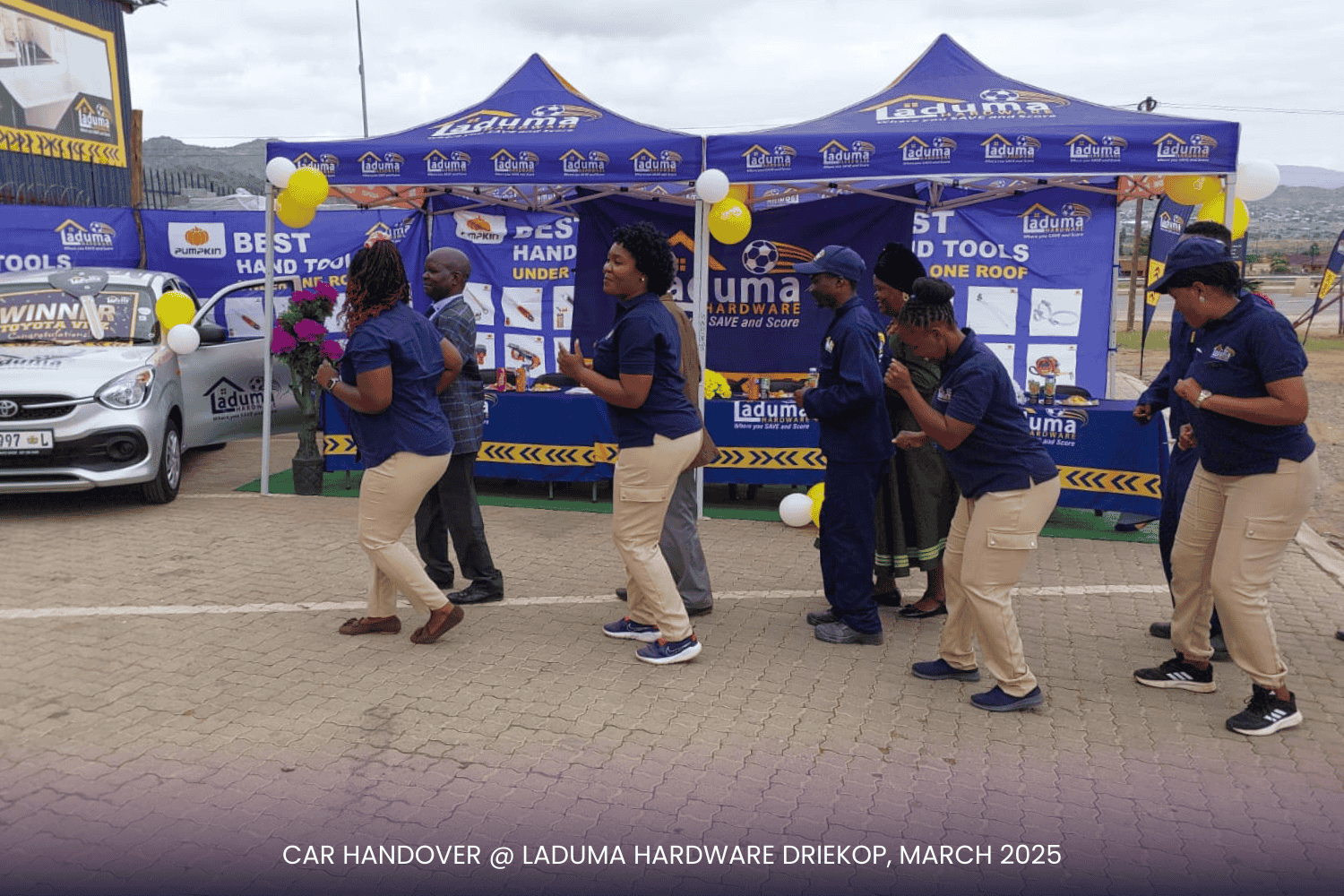 An overly excited Lucas Piet Mphethi could not contain his joy as the official day to receive his brand-new Toyota Vitz, courtesy of Laduma Hardware Driekop, finally arrived on March 27, 2025. Matching his excitement was the equally jubilant Driekop Laduma Hardware staff, who made sure the event was lively and celebratory, expressing their joy that one of their own had won the competition.