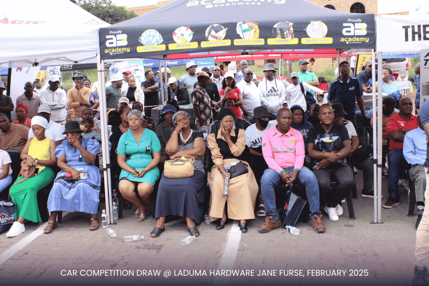 The streets of Jane Furse were buzzing with excitement as crowds gathered in anticipation of the 5th Car Competition Draw at Laduma Hardware Jane Furse on February 15, 2025! From early morning, customers, including those working out of town, arrived in numbers, eager to witness the much-awaited draw. Cars lined the streets, proving just how unmissable this moment was.