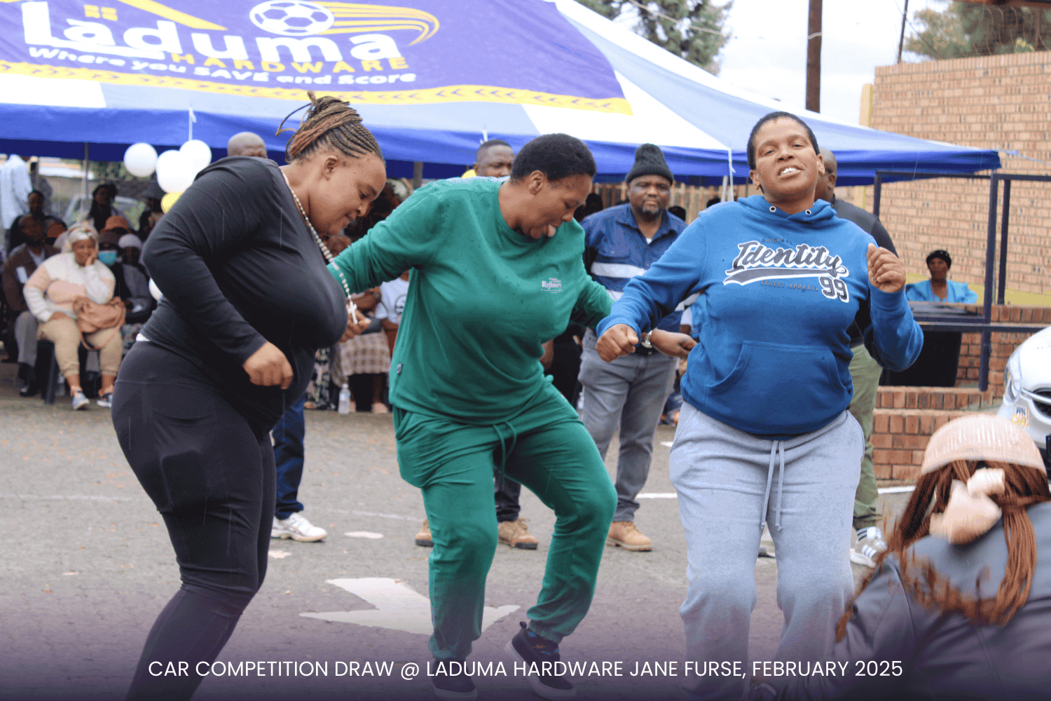 As the grand prize draw approached, excitement and tension filled the air. Our Laduma Hardware Jane Furse staff members lightened the mood with an electrifying dance, bringing laughter and joy to the audience.