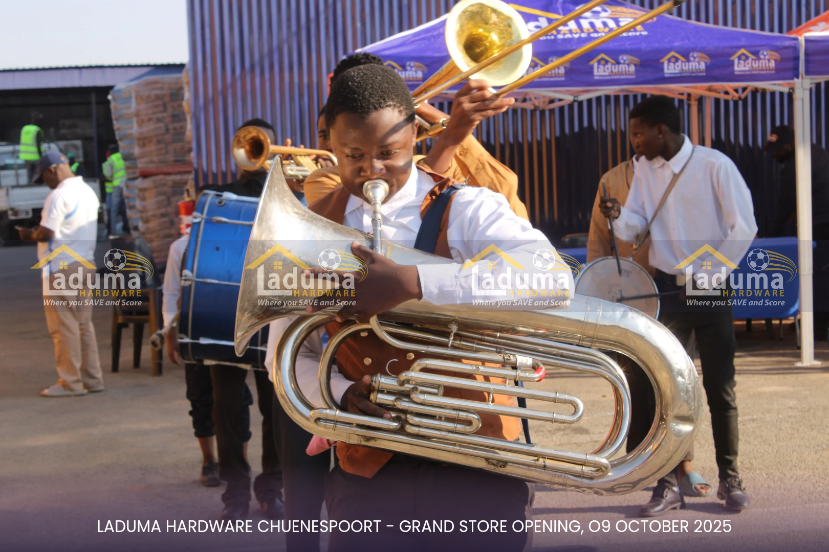 Customers were treated to a fun-filled day of excitement and giveaways — including caps, T-shirts, cooler bags, and Director’s chairs, courtesy of Laduma Hardware. The lively Laduma Gumba Gumba and Brass Band kept the atmosphere festive as shoppers enjoyed the crazy opening specials on offer.