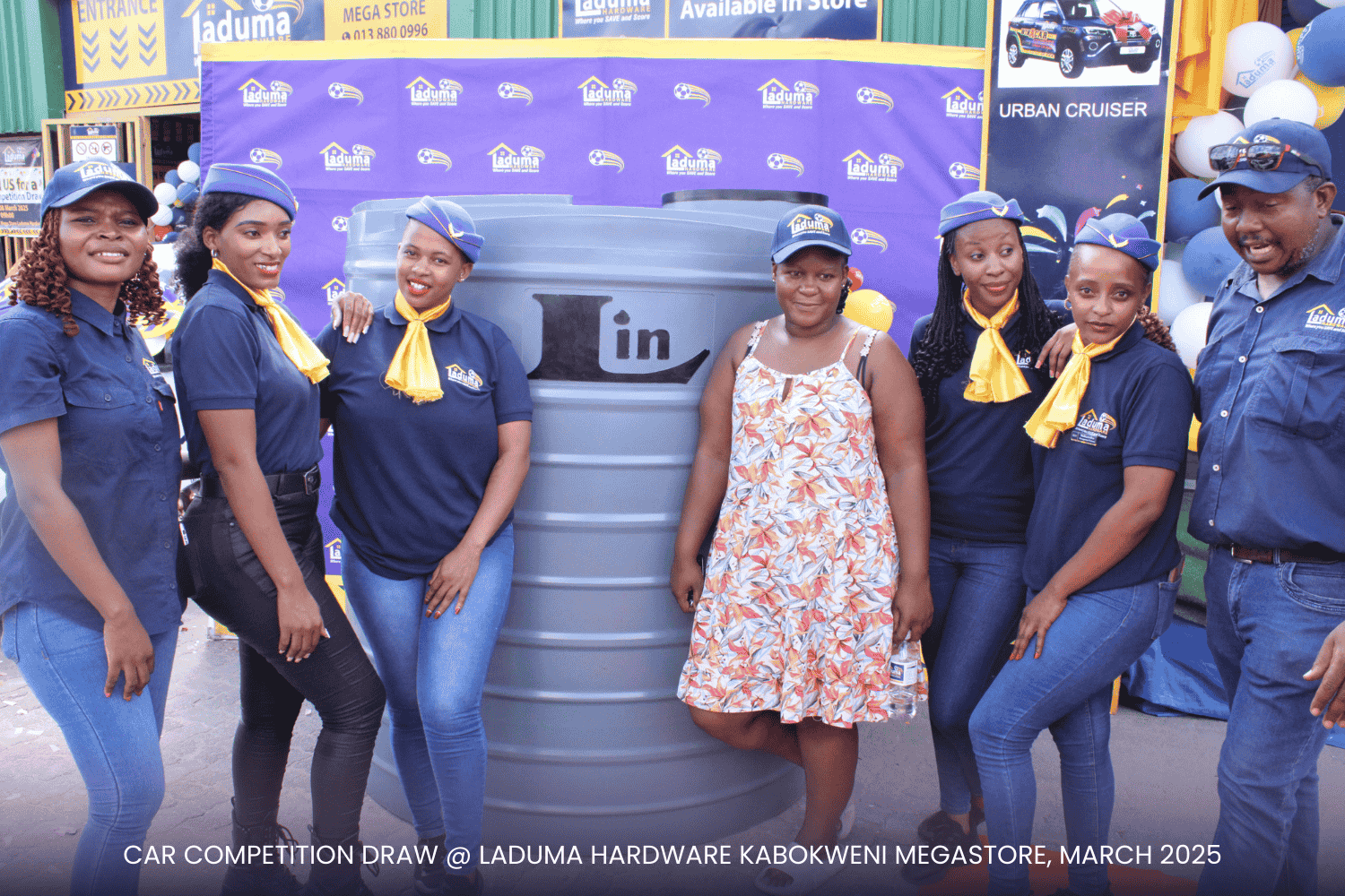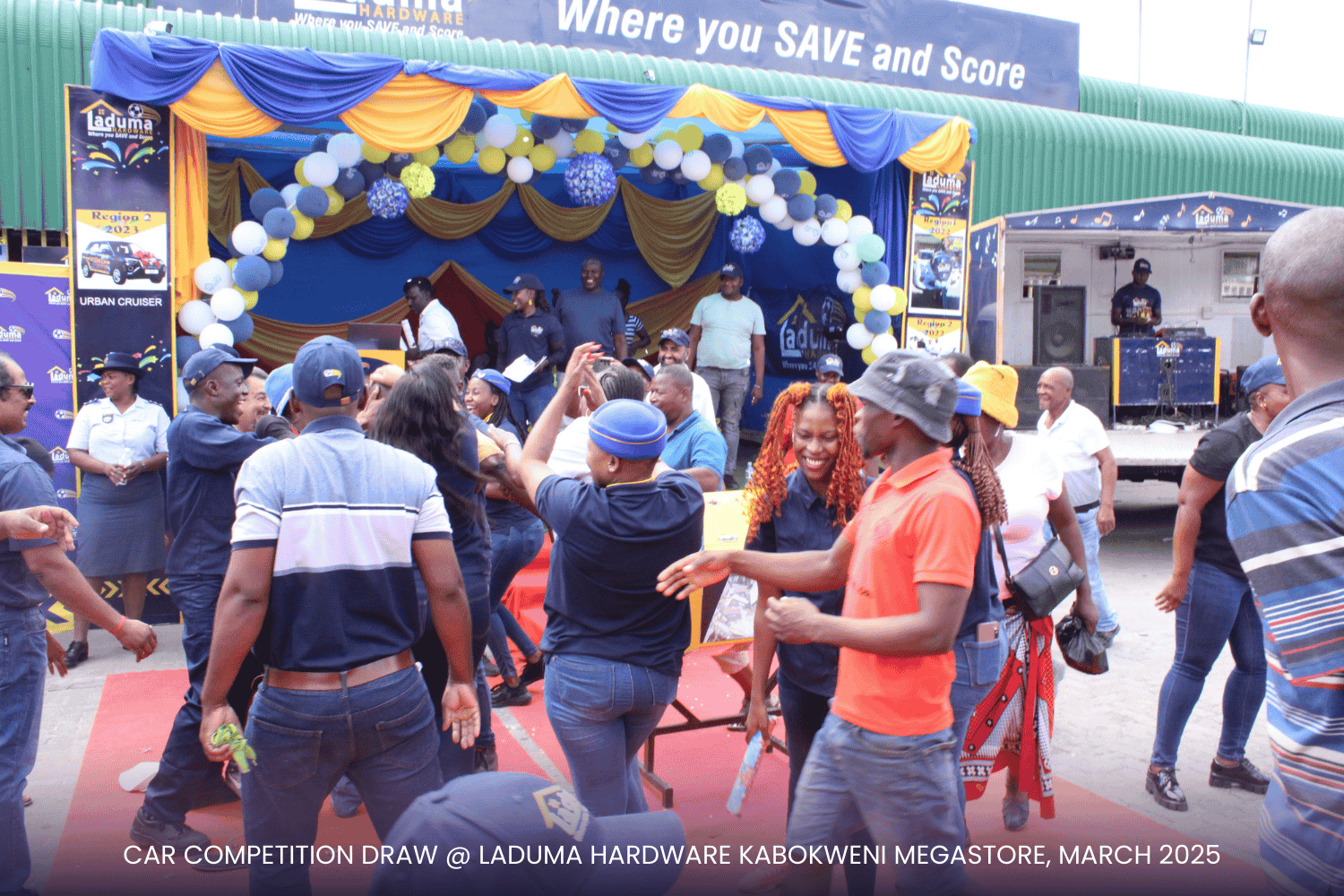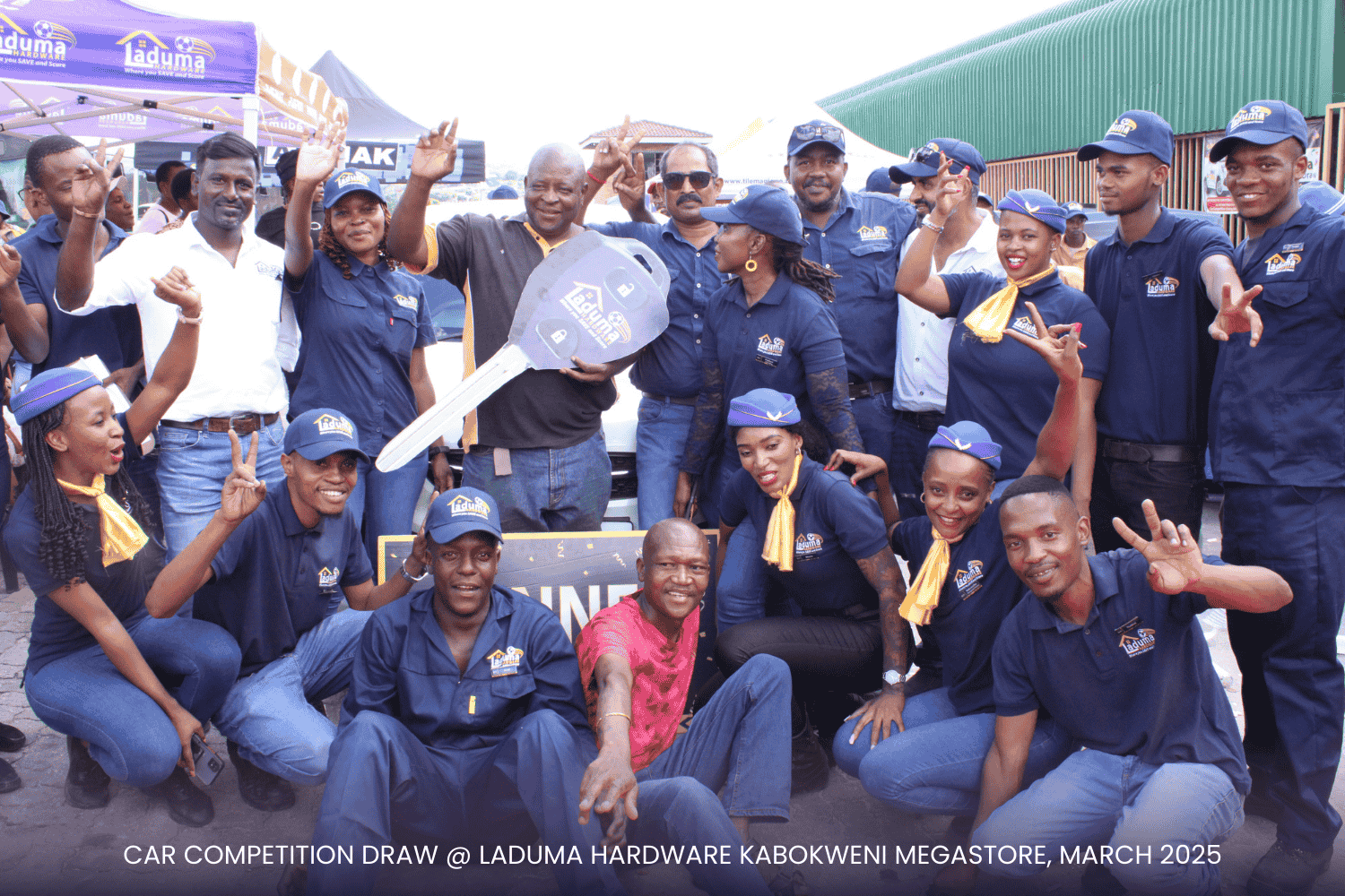 He could not contain his joy—beaming with smiles as the crowd erupted in celebration! Hugs, screams, ululations, and dance filled the air as friends, family, and fellow customers gathered around to congratulate him. It was a moment of pure excitement, a true testament to the magic of Laduma Hardware’s Car Competition Draws!