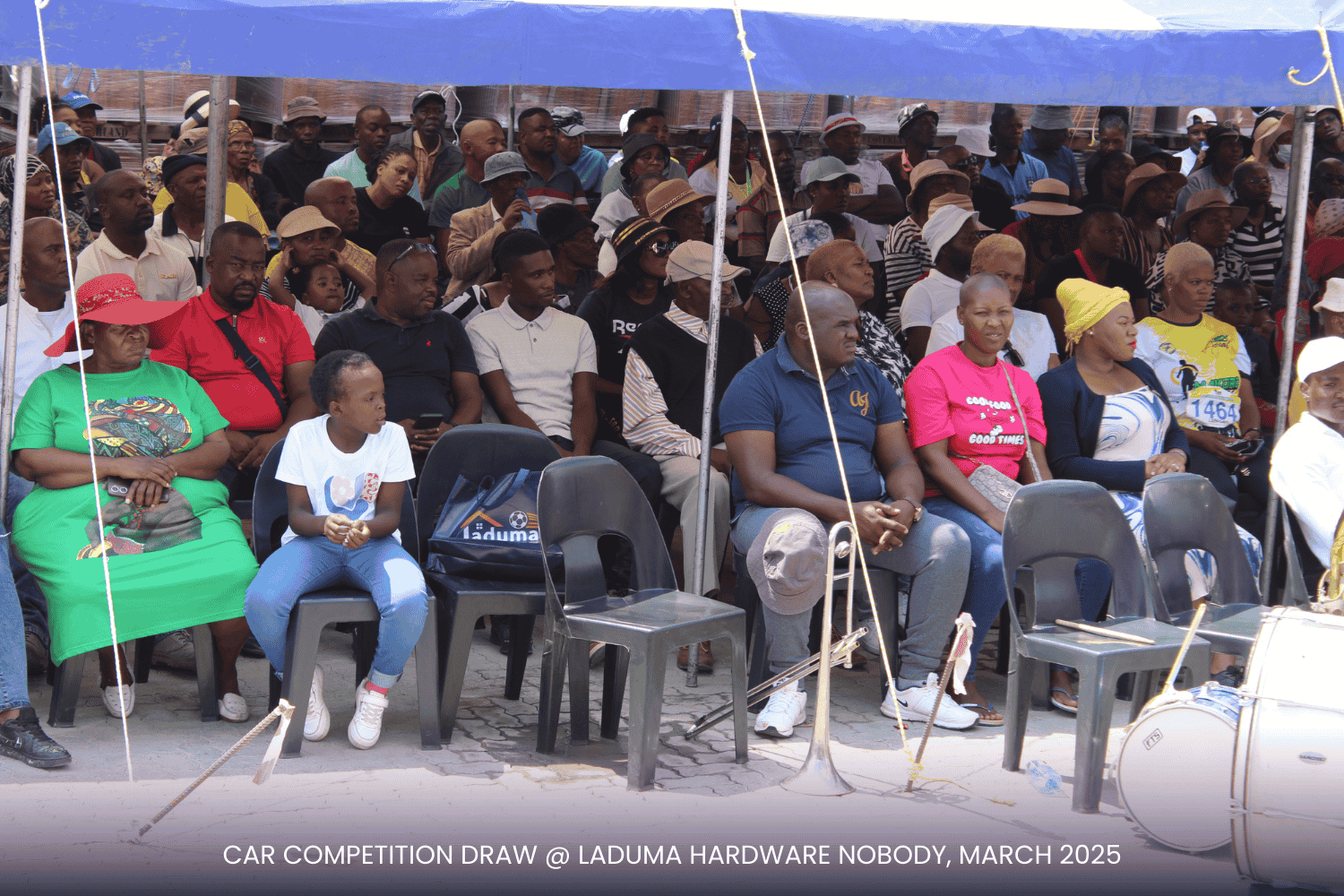 The 9th and final car competition draw ended on a high note, with customers celebrating, enjoying a hearty meal, and witnessing Laduma Hardware's commitment to giving back to the community.