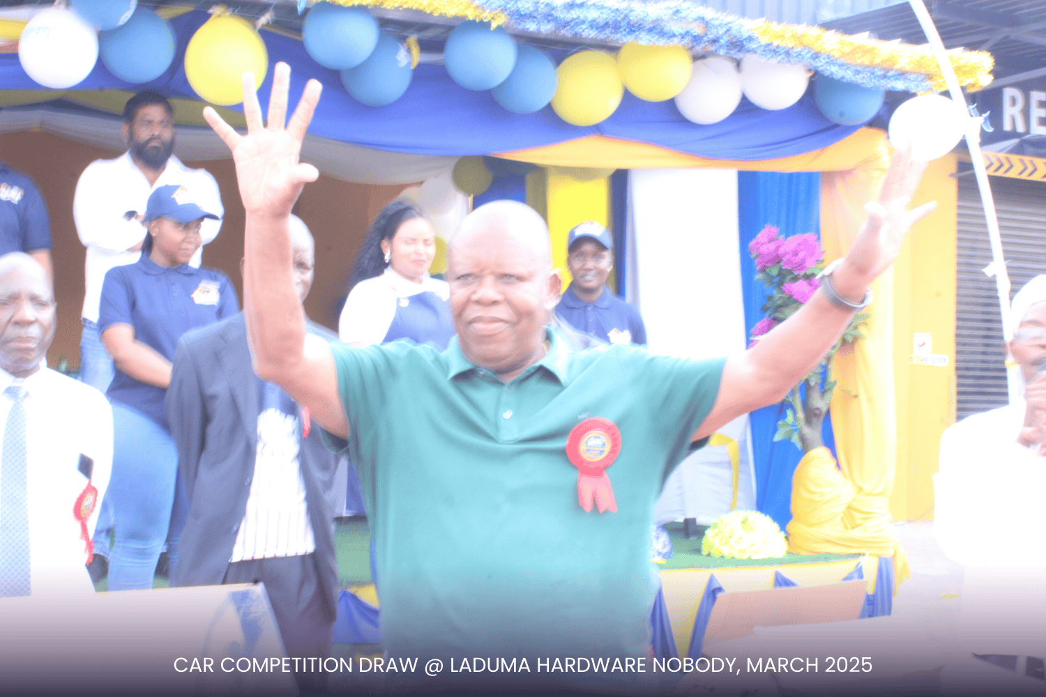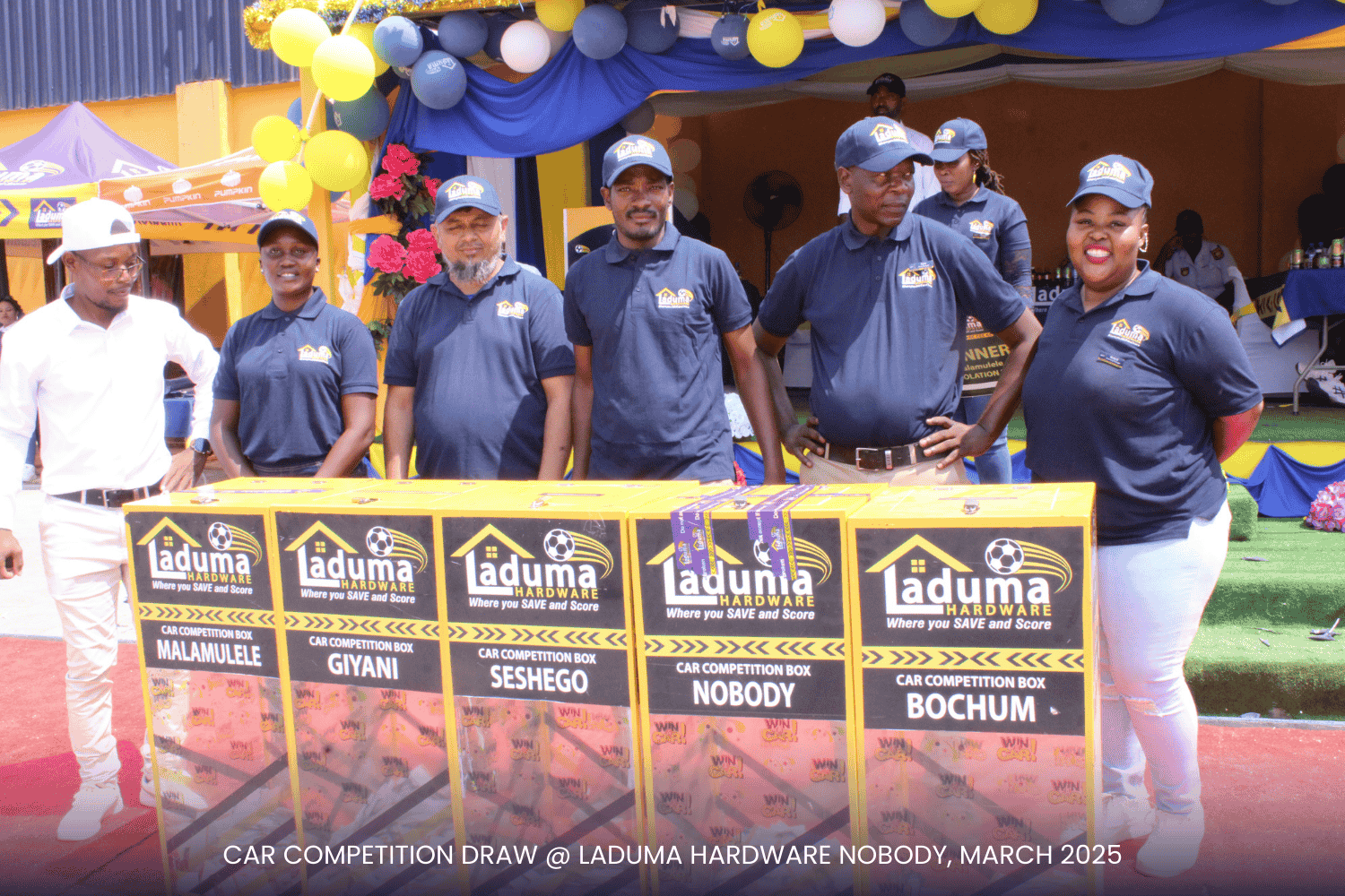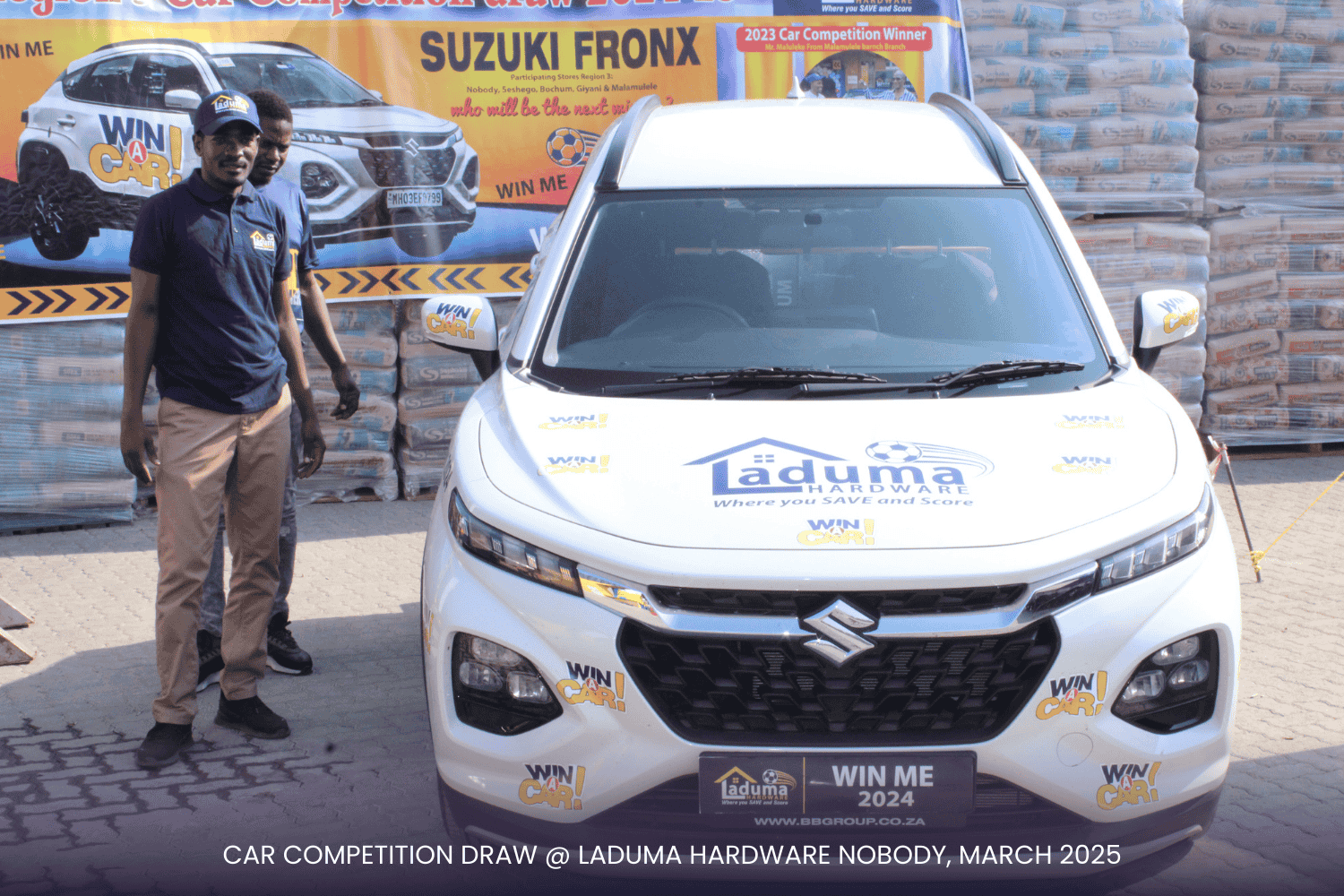 Since January 18, 2025, 9 brand-new cars have been won across Laduma Hardware stores, with 5 already handed over in Tonga, Hluvukani, Mkhuhlu, Lebowakgomo, and Thulamahashe. The remaining 4 cars are in the process of being handed over to their new owners, who are Laduma Hardware customers who simply participated in the 204/25 Car competition.