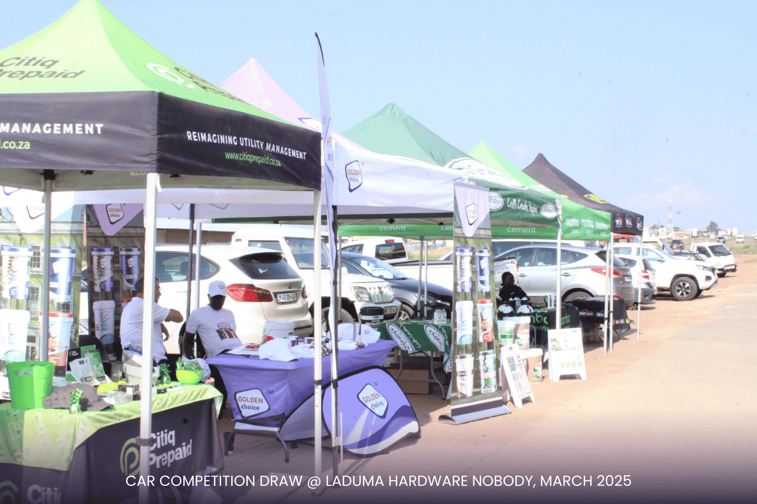 The battle for the grand prize was between Mankweng, Seshego, Bochum, Giyani, and Malamulele stores. VIPs in attendance included Kgoshi Mothiba from Mothiba Tribal Council with his delegation, Constable Mashangoane and Constable Ramashapa from Mankweng SAPS. Suppliers including Africa Tanks, Ceramic Industries, PPC Cement, Tile Magic, Matus, O’Gradys, Golden Choice Paint, Mamba Cement, and Flash Components engaged with customers, showcasing their products and giving away exciting promotional items.