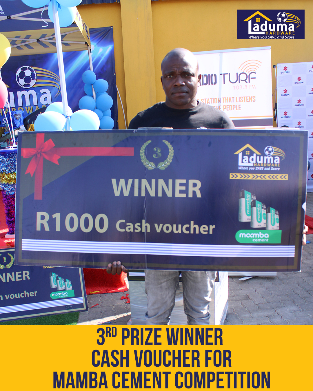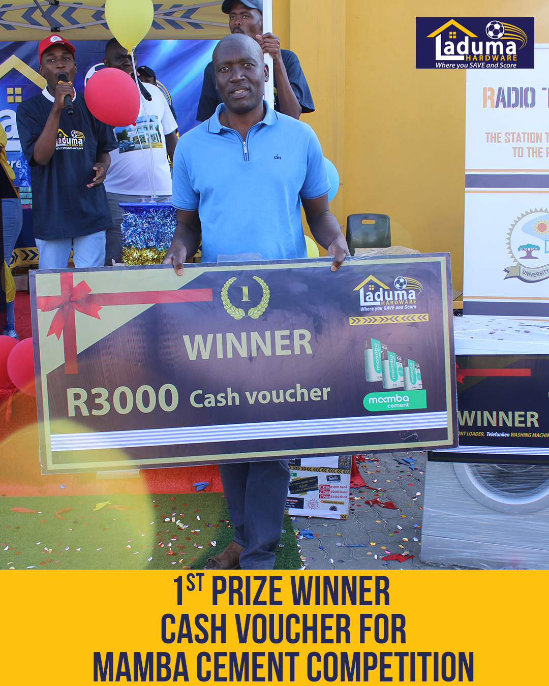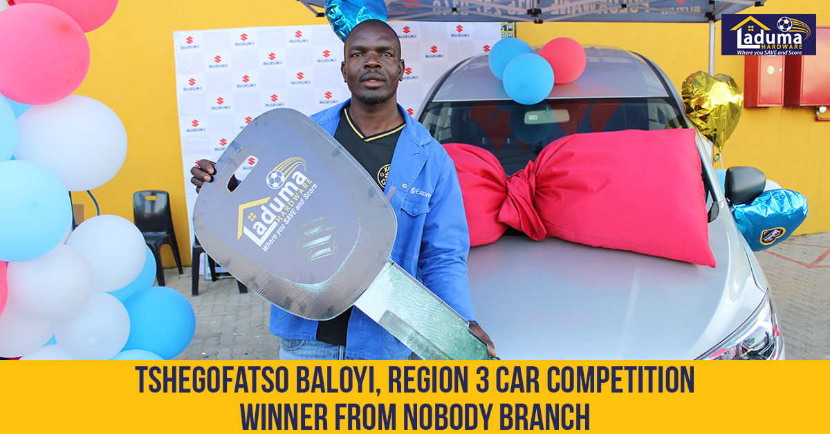 - A 2500 Litres Jojo water tank was won by Michael Phambane from Malamulele Laduma Hardware