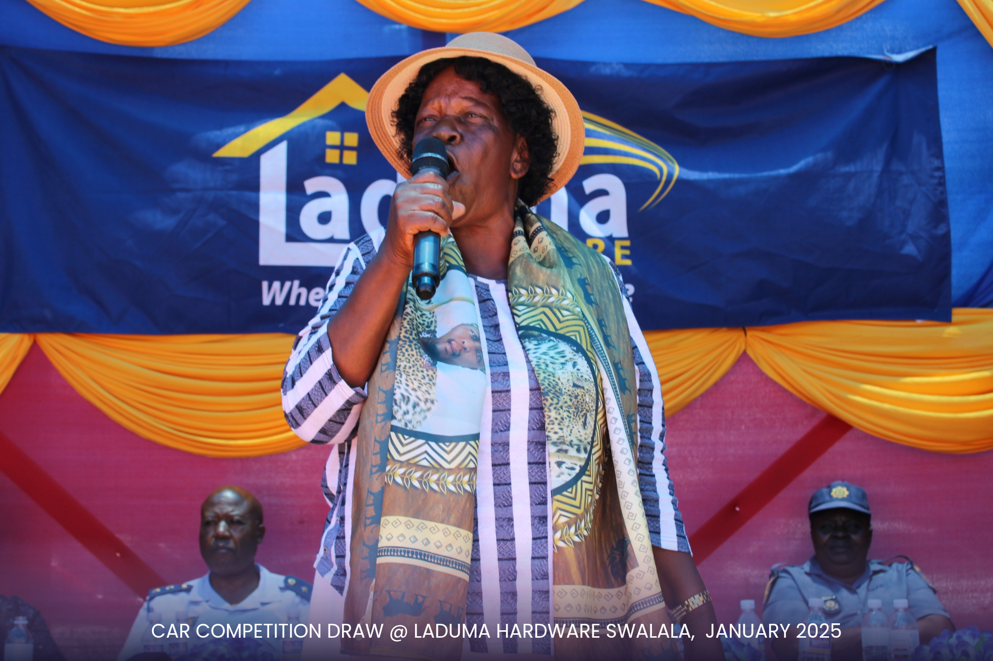 Then, the final moment arrived! Colonel Lesele took centre stage to draw the grand prize winner. After intense anticipation, Ms. Barobile Daphney Mohlala , a customer of Hluvukani Laduma Hardware was announced as the proud winner of a brand-new Toyota Vitz!